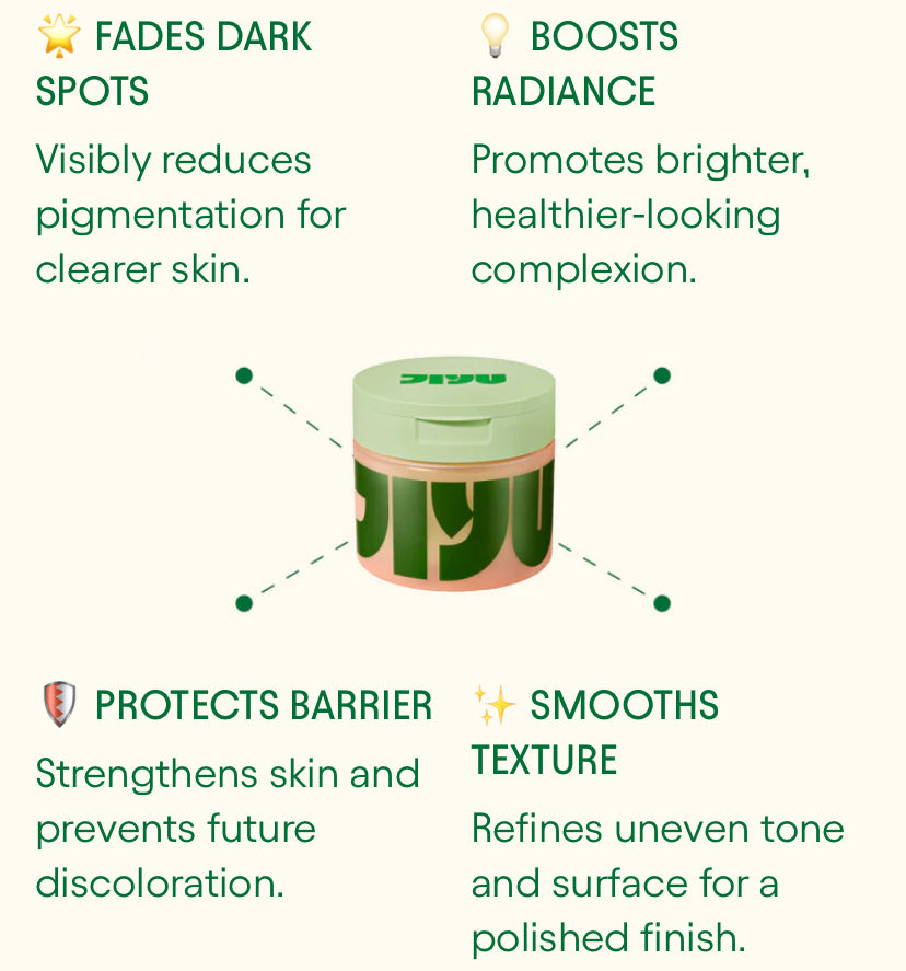 Clinically proven brighteners that work synergistically to reduce hyperpigmentation, regulate melanin production, and visibly improve overall skin radiance.